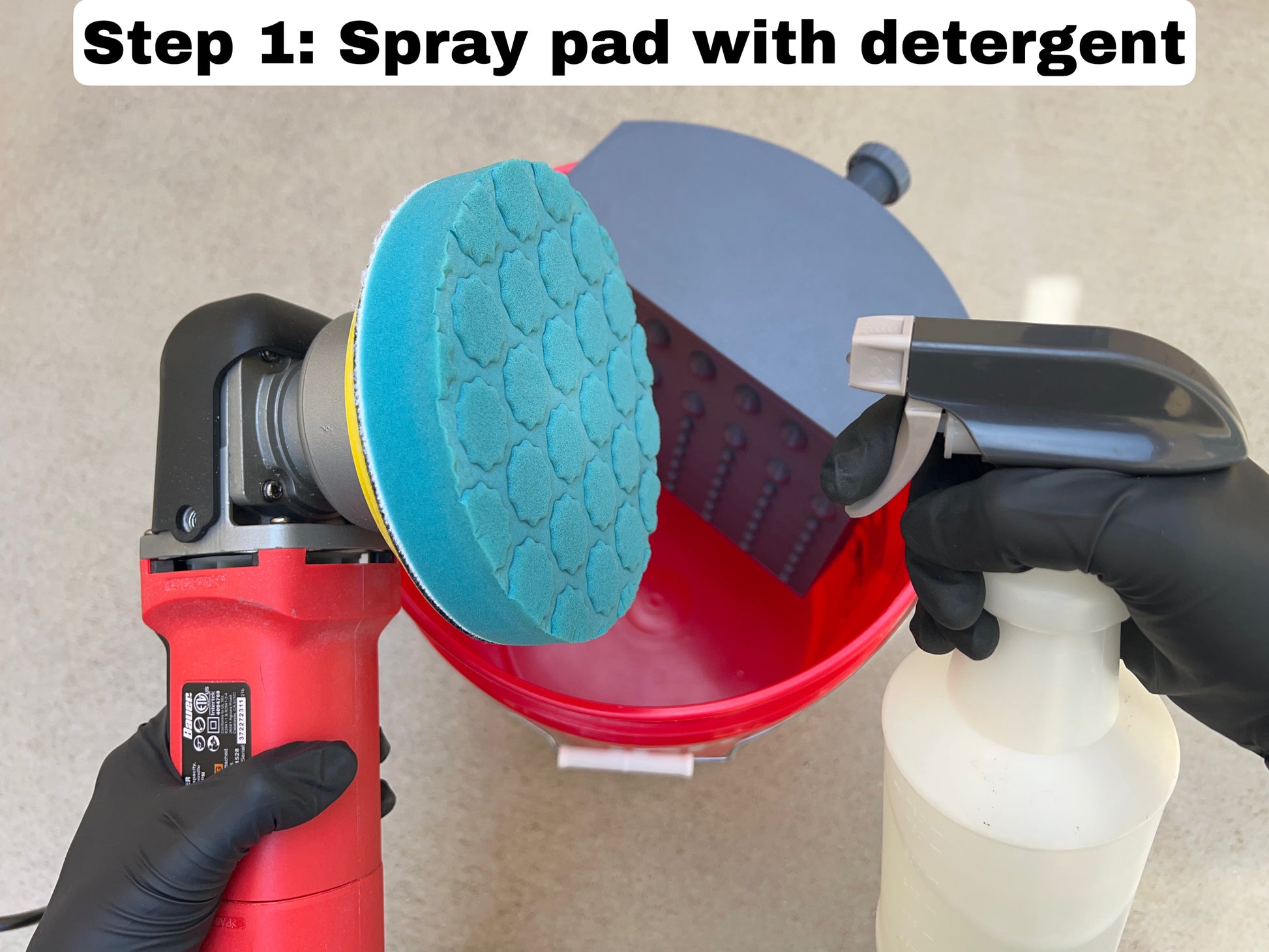 - Step 1 - Spray the polishing pad with the detergent or of your choice.