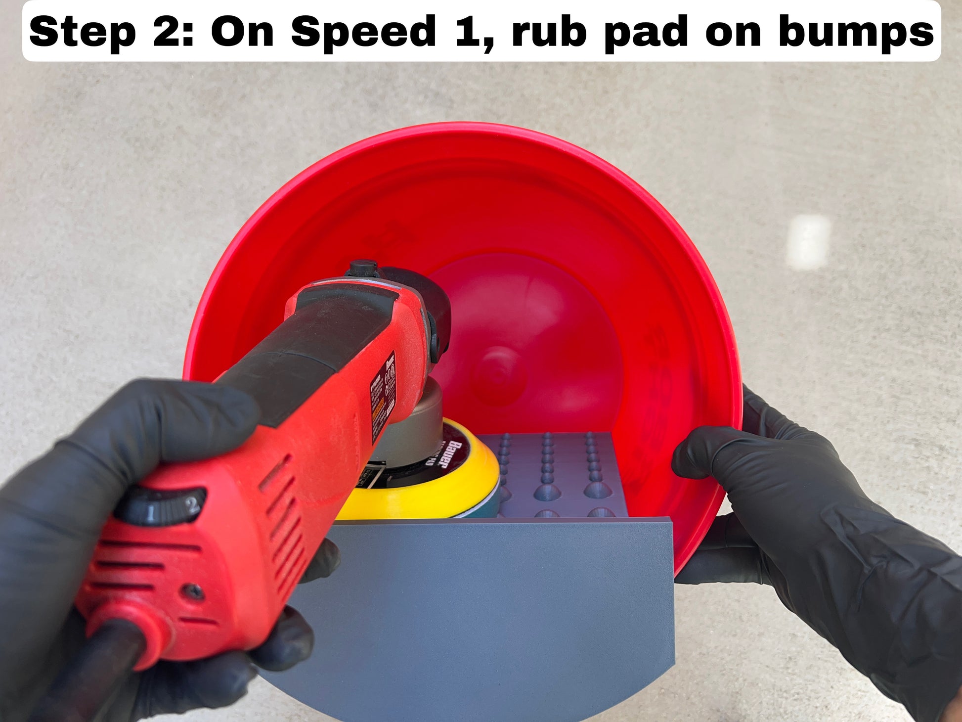 - Step 2 - On the lowest speed, rub the pad against Uncle Bumpy to massage and agitate the polish, compound and contaminant residue.